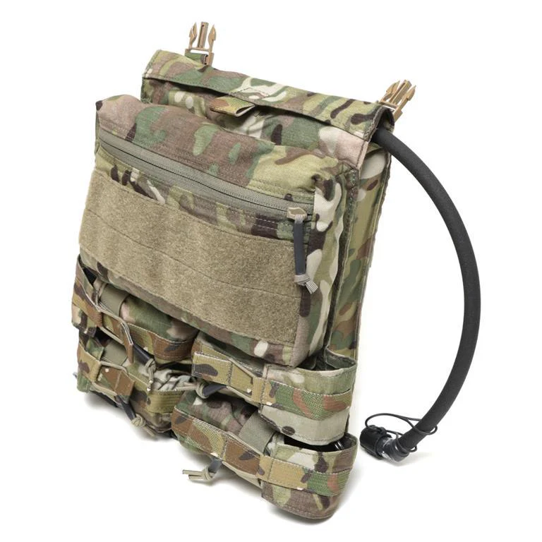 - Hydration hose can be routed either (L), (R), or (L)/(R) of center